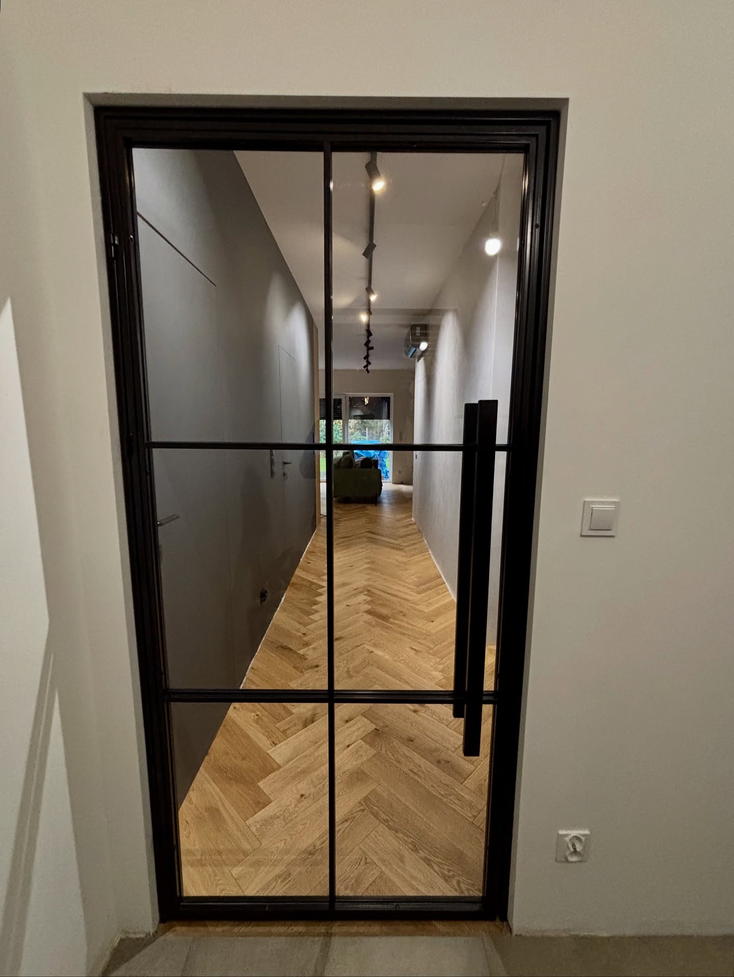 Czarne drzwi loftowe to absolutny hit w aranżacji wnętrz. Idealne do wiatrołapu – subtelnie dzielą przestrzeń, nie przytłaczając jej, a jednocześnie wprowadzają do wnętrza industrialny, ale elegancki klimat.