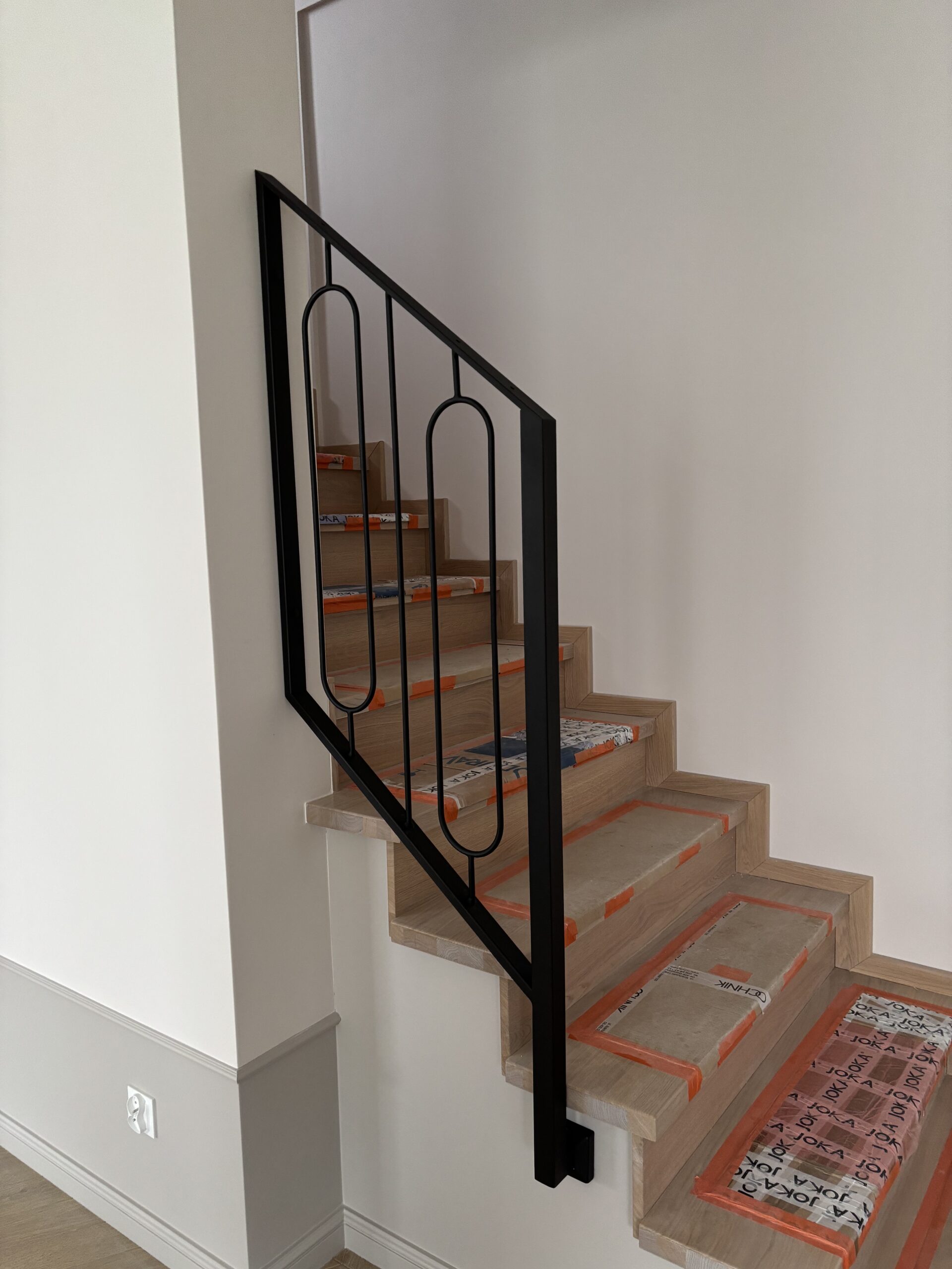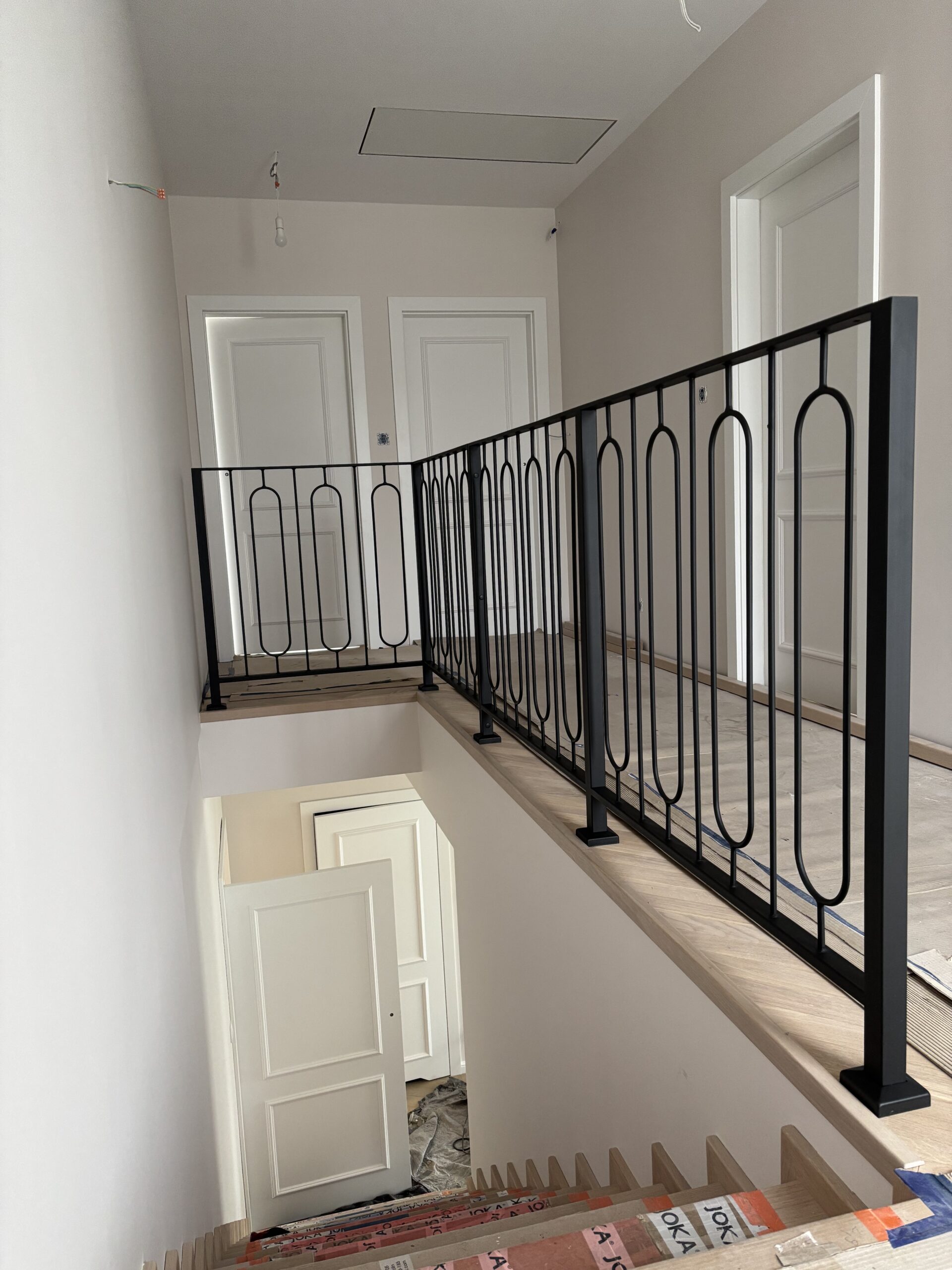 Czarna, minimalistyczna balustrada stalowa, która totalnie odmienia wnętrze.